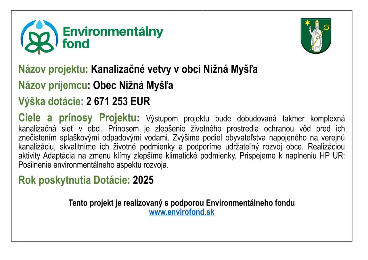 Výstupom projektu bude dobudovaná takmer komplexná kanalizačná sieť v obci. Prínosom je zlepšenie životného prostredia ochranou vôd pred ich znečistením splaškovými odpadovými vodami. Zvýšime podiel obyvateľstva napojeného na verejnú kanalizáciu, skvalitníme ich životné podmienky a podporíme udržateľný rozvoj obce. Realizáciou aktivity Adaptácia na zmenu klímy zlepšíme klimatické podmienky. Prispejeme k naplneniu HP UR: Posilnenie environmentálneho aspektu rozvoja.