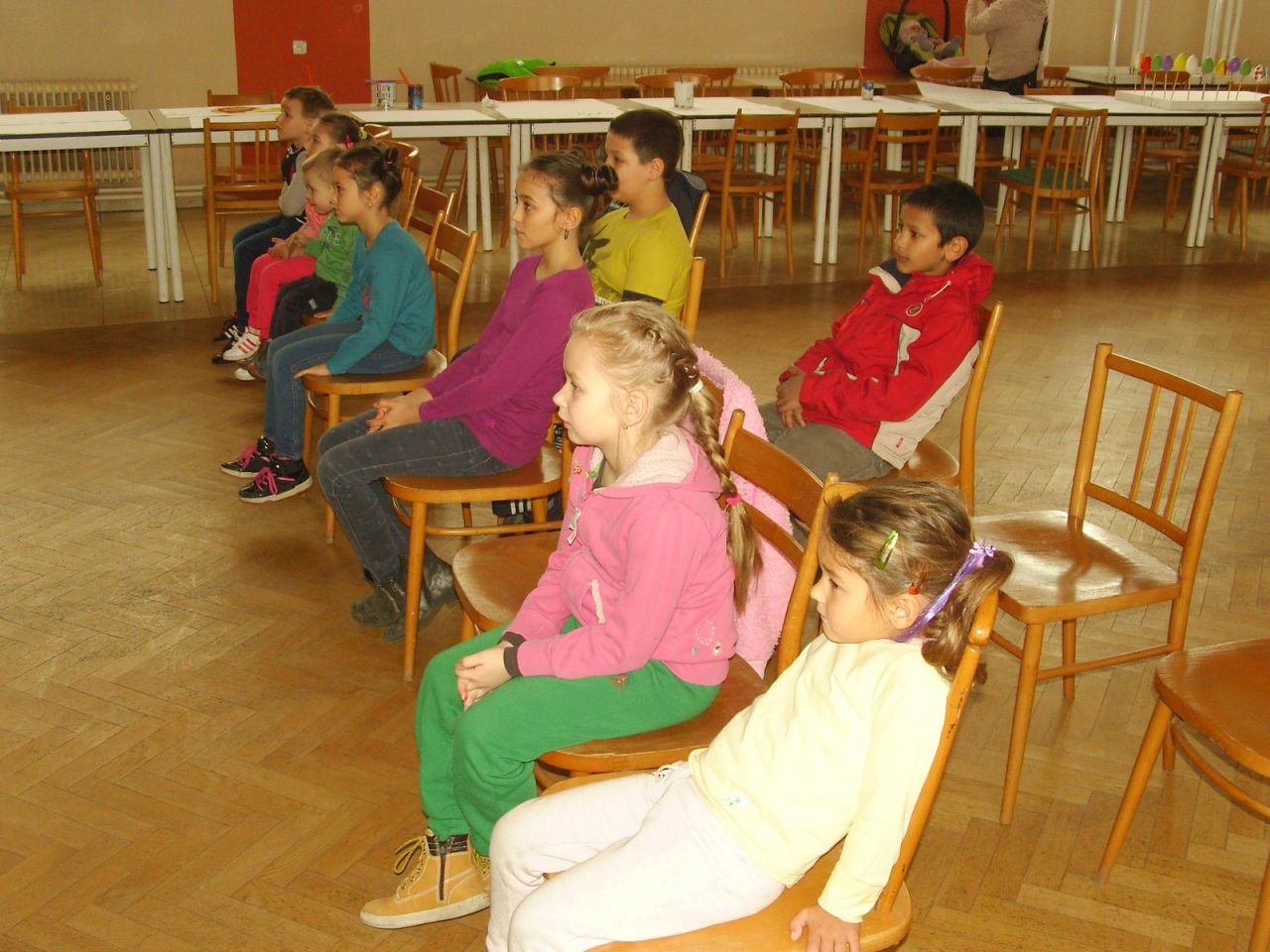 OZ Dúhová stonožka pripravilo pre naše detičky zaujímavé dopoludnie. Na zelený štvrtok si mohli prísť do sály KD namaľovať svoje vlastné motívy na veľkonočné kraslice. Keď boli kraslice hotové, prišiel čas ich zaniesť pánu starostovi. Ten detičky privítal v zasadačke obecného úradu. Vysvetlil ako úrad funguje a čomu sa venujú jednotlivé pracovníčky. Zároveň sa mohli pozrieť aj do jeho kancelárie, či vyskúšať si hlásenie v miestnom rozhlase. Na záver sa zvyšné kraslice odniesli do parčíku pod kaštieľom, kde sa stali súčasťou krásnej výzdoby.